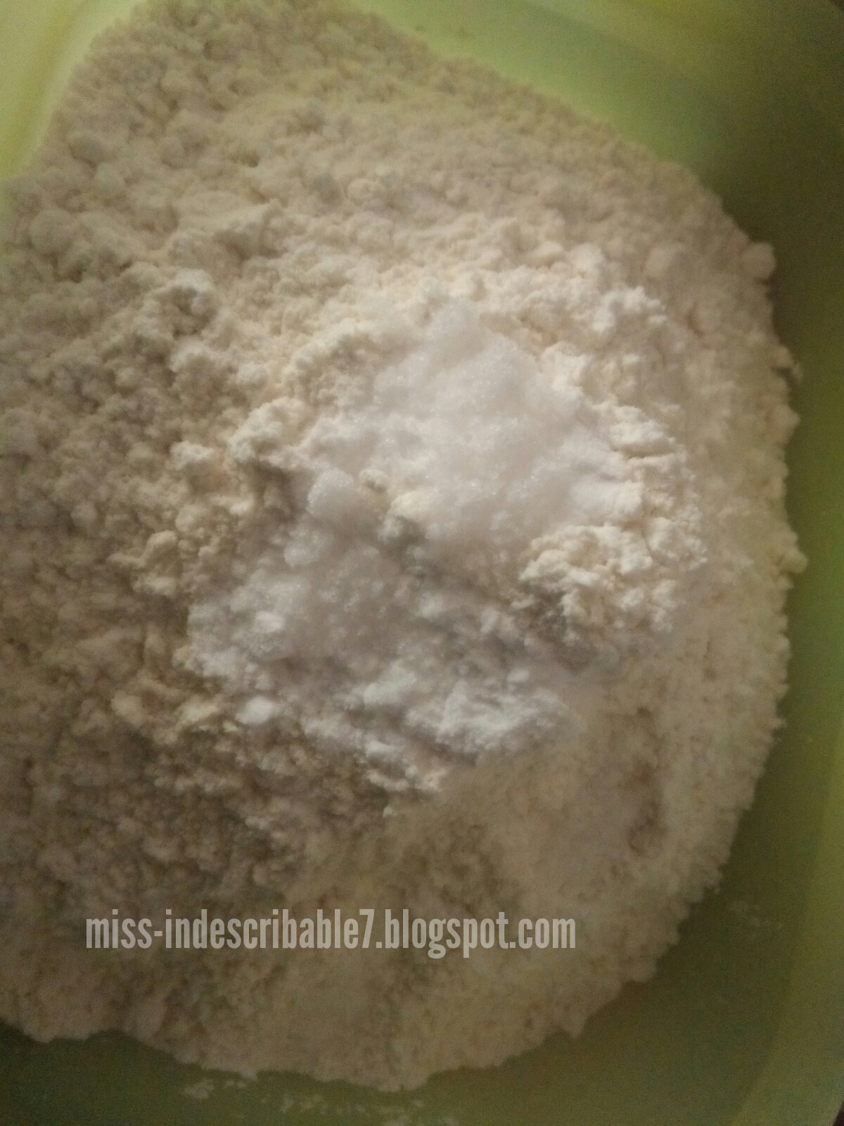 Di adunan tepung yang dah diayak.. halus mulus tulus. Bahaha..
